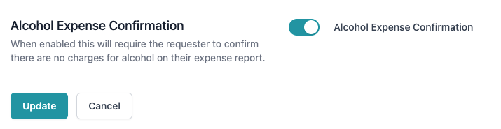 Reimbi offers a policy configuration that, when activated, requires the candidate to confirm before submitting their expense report that it is clear of alcohol expenses.